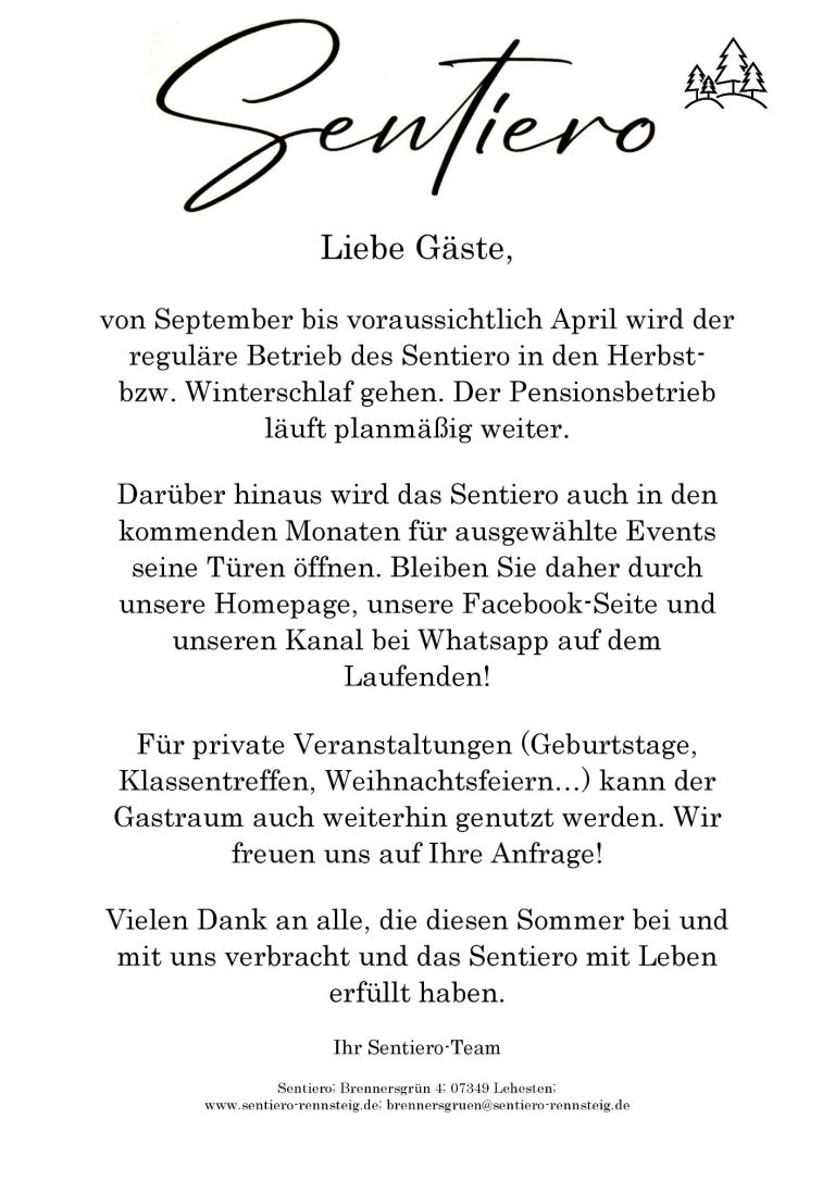 Das Sentiero ("der Weg") in Brennersgrün ist ein Ort, an dem Menschen zusammenkommen. Egal ob freitags zum Kneipenabend mit Freunden, samstags zum Cappuccino mit einem Stückchen Kuchen oder sonntags zum Mittagstisch - bei uns gibt es an jedem Wochenende allerhand Leckeres in geselliger Runde zu entdecken.